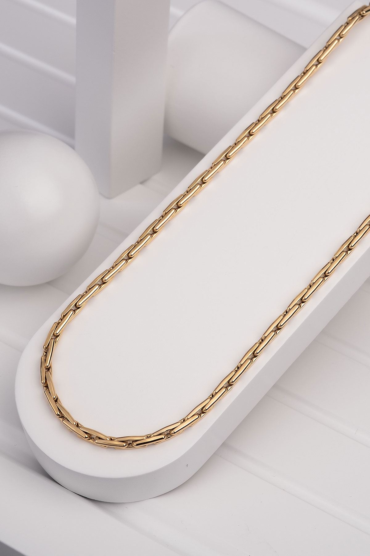 Günlük kombinlerinize uyum sağlayacak olan 14 Ayar Sarı Altın Tasarım Zincir ile dikkatleri üzerinize çekin. Her an sizi tamamlayacak 14 Ayar Sarı Altın Tasarım Zincir sizin için vazgeçilmez bir parça olacaktır. Şıklığınızı taçlandırdığımız özgün tasarımlarımız ile kendinizi şımartın.