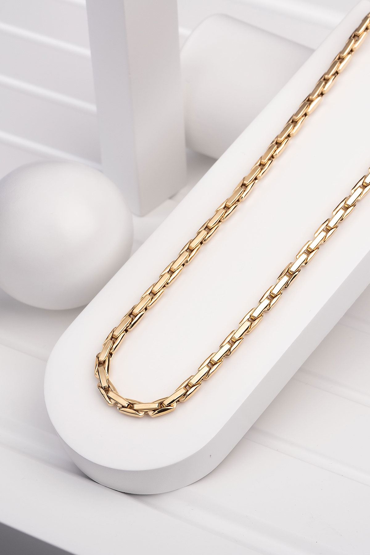 Günlük kombinlerinize uyum sağlayacak olan 14 Ayar Sarı Altın Tasarım Zincir ile dikkatleri üzerinize çekin. Her an sizi tamamlayacak 14 Ayar Sarı Altın Tasarım Zincir sizin için vazgeçilmez bir parça olacaktır. Şıklığınızı taçlandırdığımız özgün tasarımlarımız ile kendinizi şımartın.