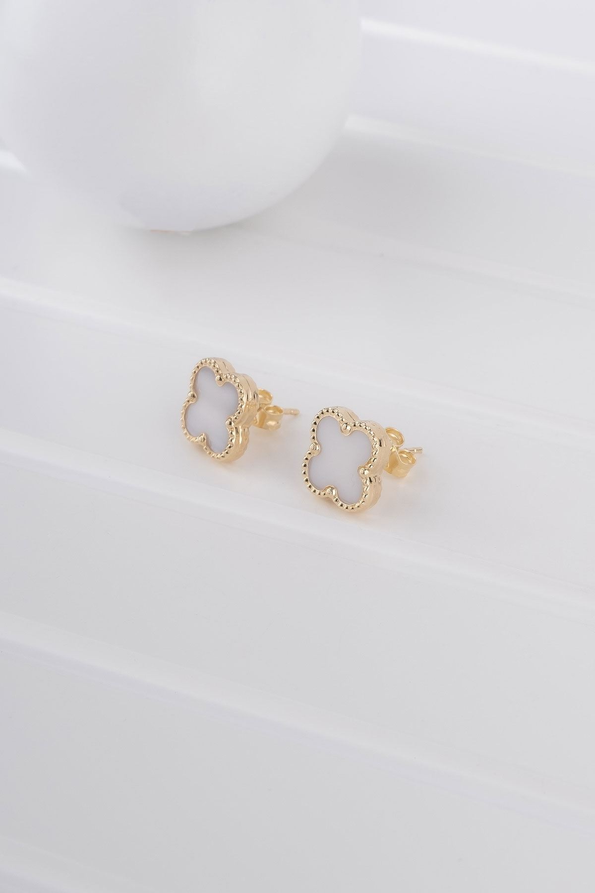 14 Ayar Sarı Altın Vidalı Yonca Küpe kaliteli işçiliği ile güvenle alışveriş yapabileceğiniz