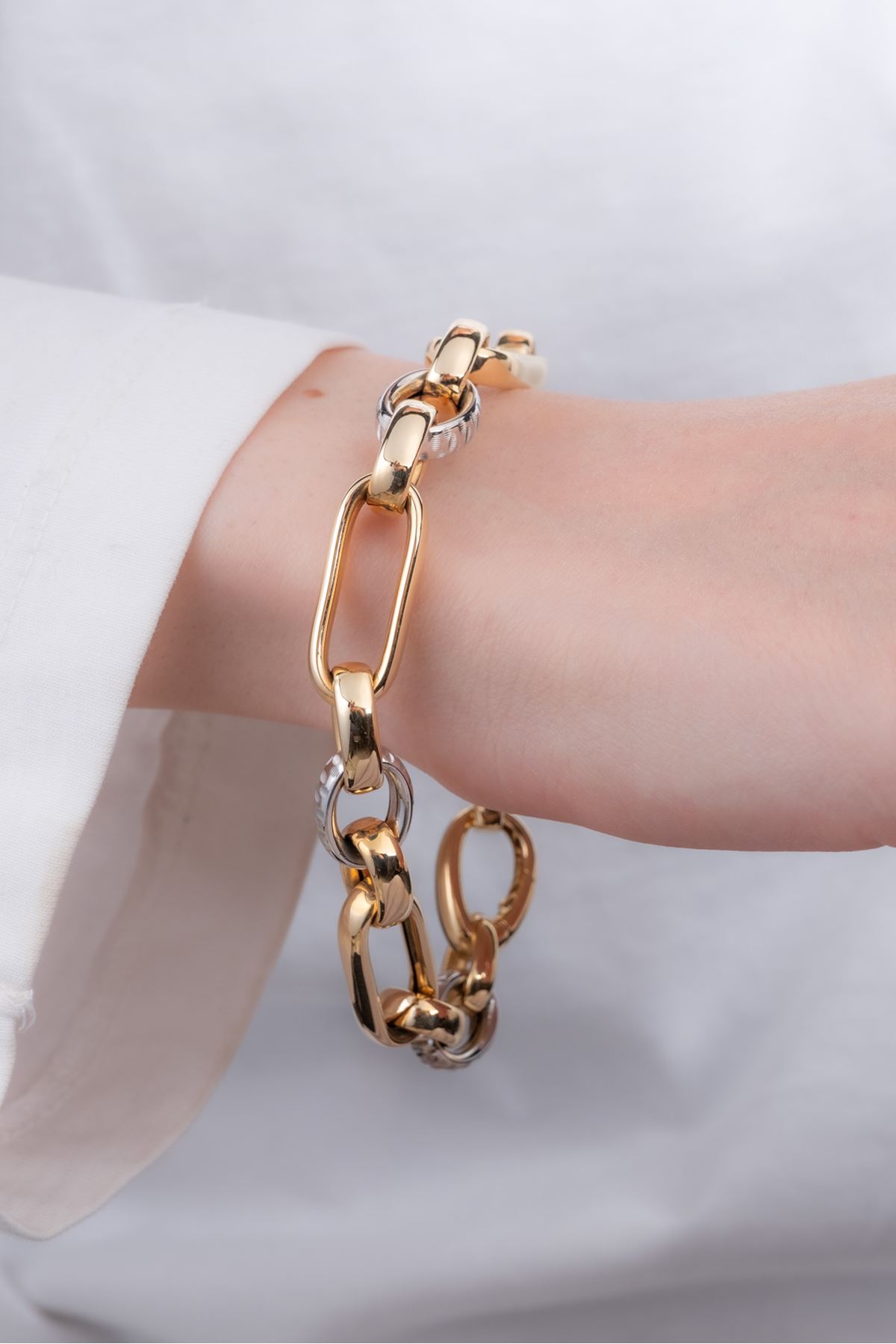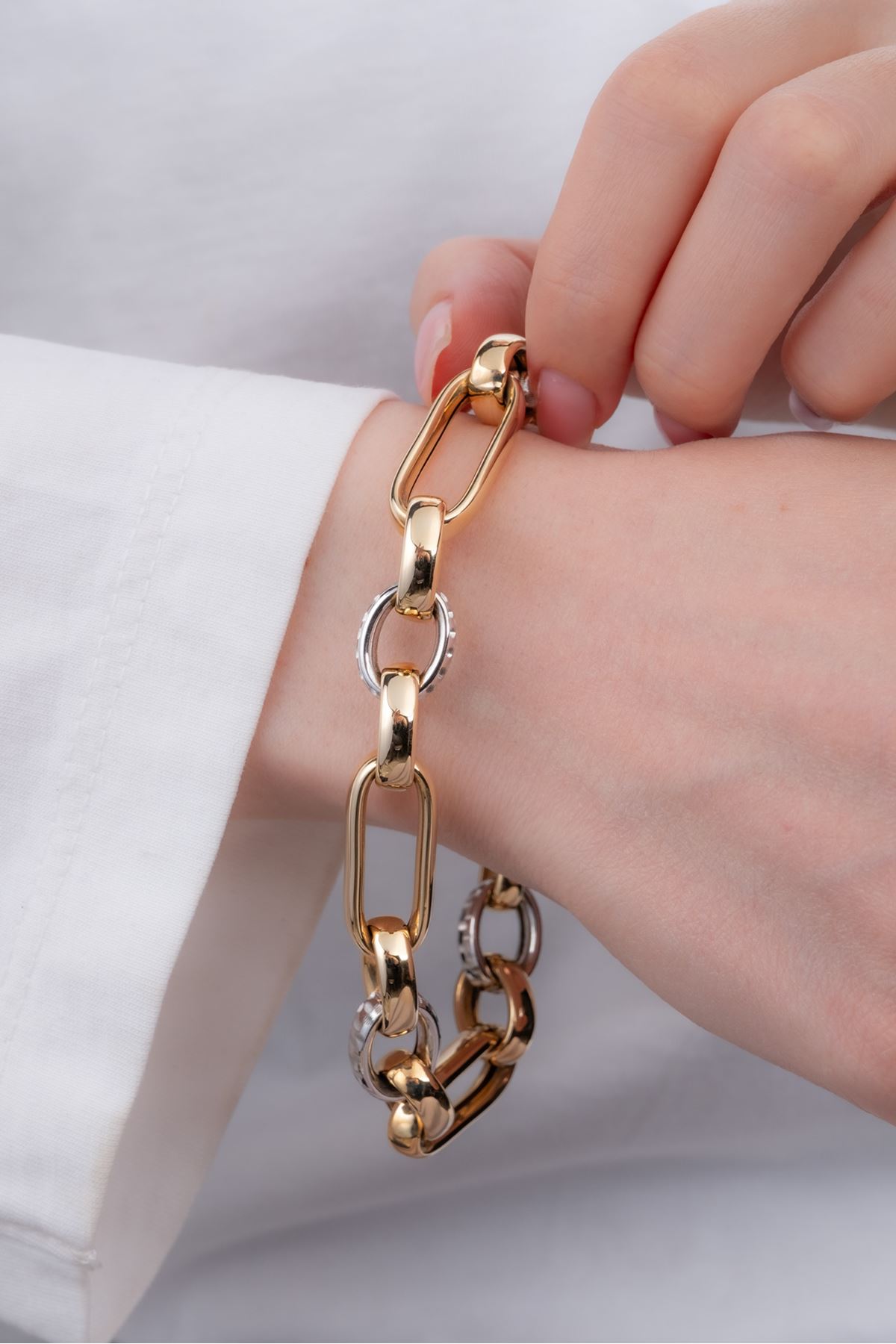 14 Ayar Sarı Beyaz Altın Hallow Bileklik kaliteli işçiliği ile güvenle alışveriş yapabileceğiniz