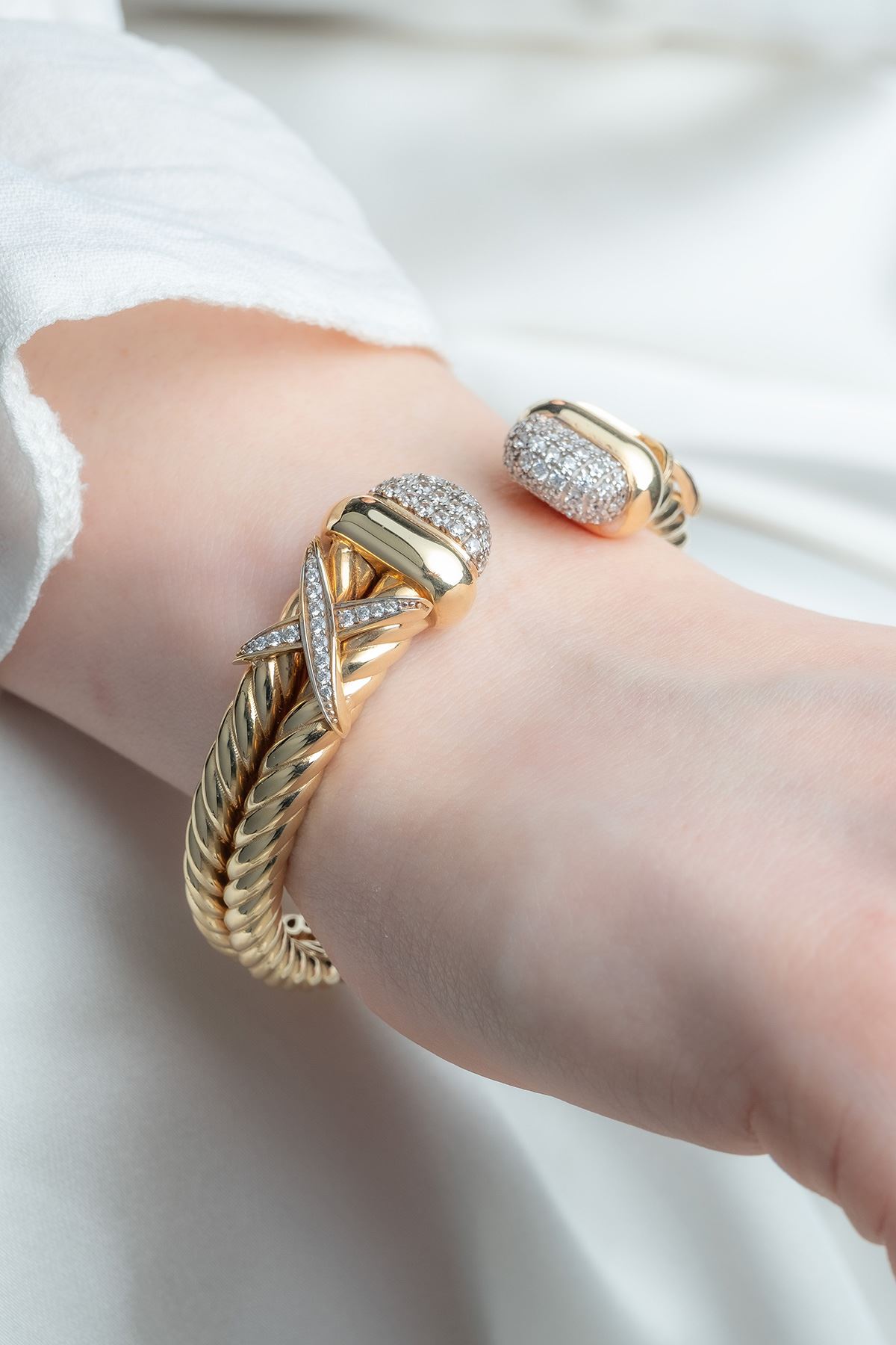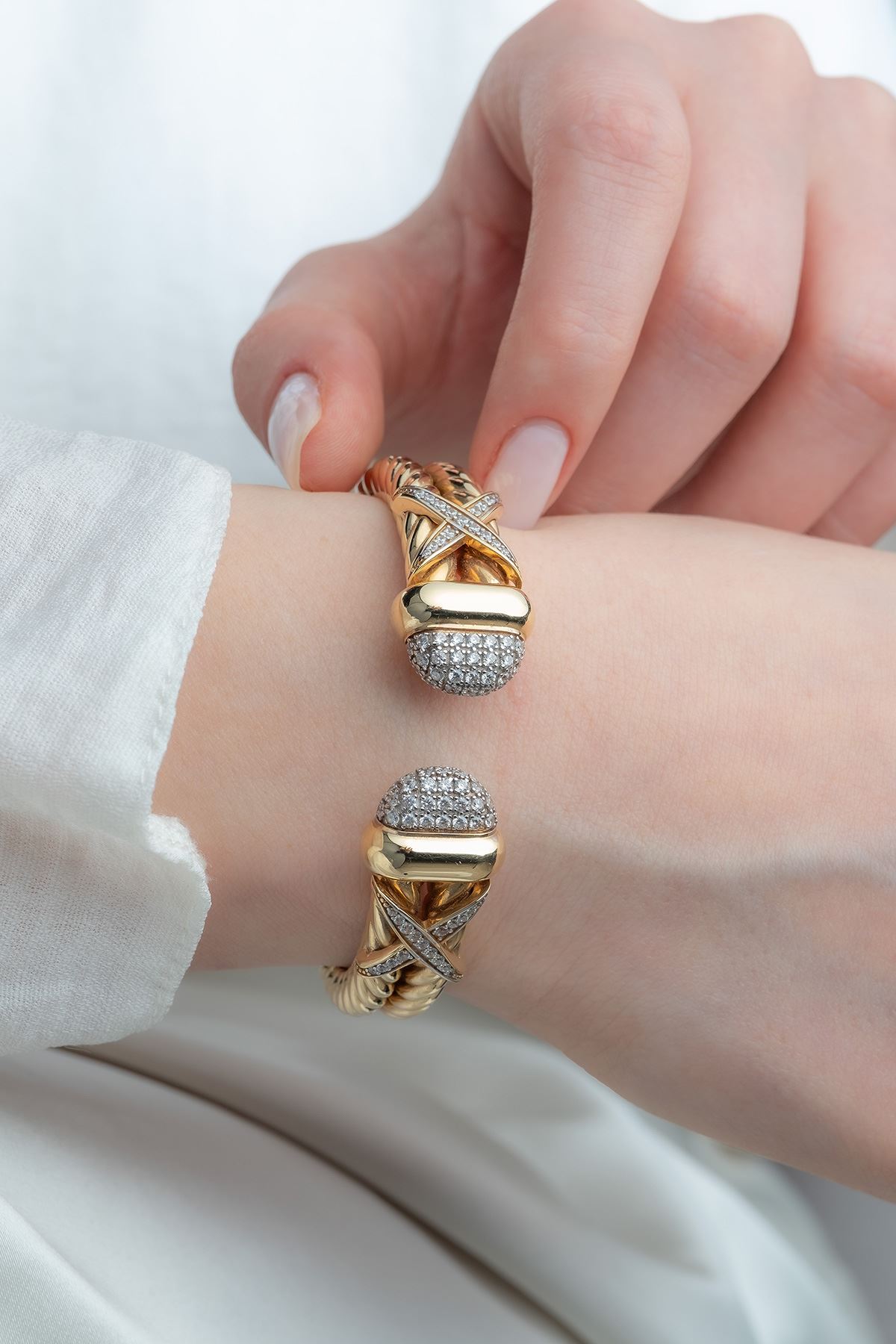 14 Ayar Sarı Beyaz Altın Taşlı Çiftbaşlı Bilezik kaliteli işçiliği ile güvenle alışveriş yapabileceğiniz