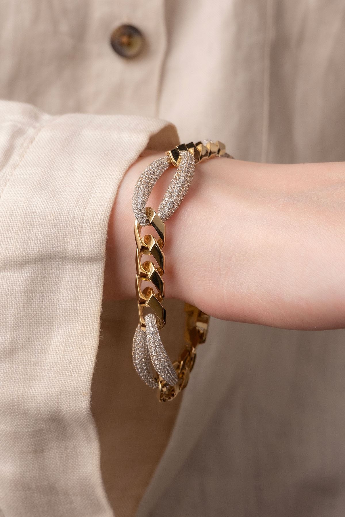 14 Ayar Sarı Beyaz Altın Taşlı Gurmet Bileklik kaliteli işçiliği ile güvenle alışveriş yapabileceğiniz