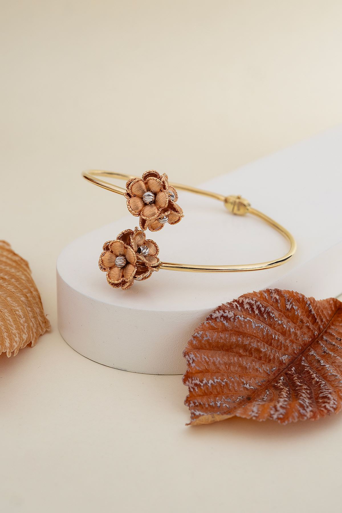 14 Ayar Üç Renkli Altın Çift Çiçek Tasarım Bilezik kaliteli işçiliği ile güvenle alışveriş yapabileceğiniz