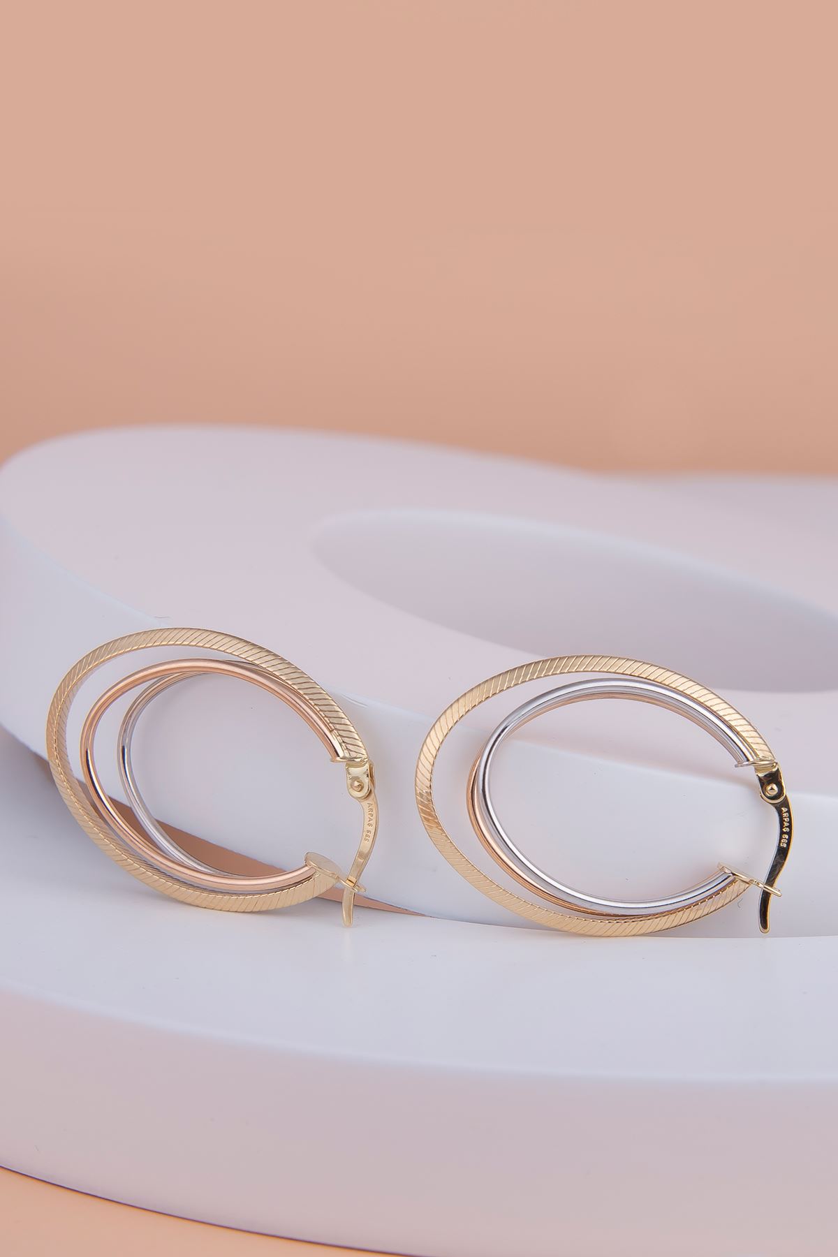 14 Ayar Üç Renkli Altın Halka Küpe kaliteli işçiliği ile güvenle alışveriş yapabileceğiniz