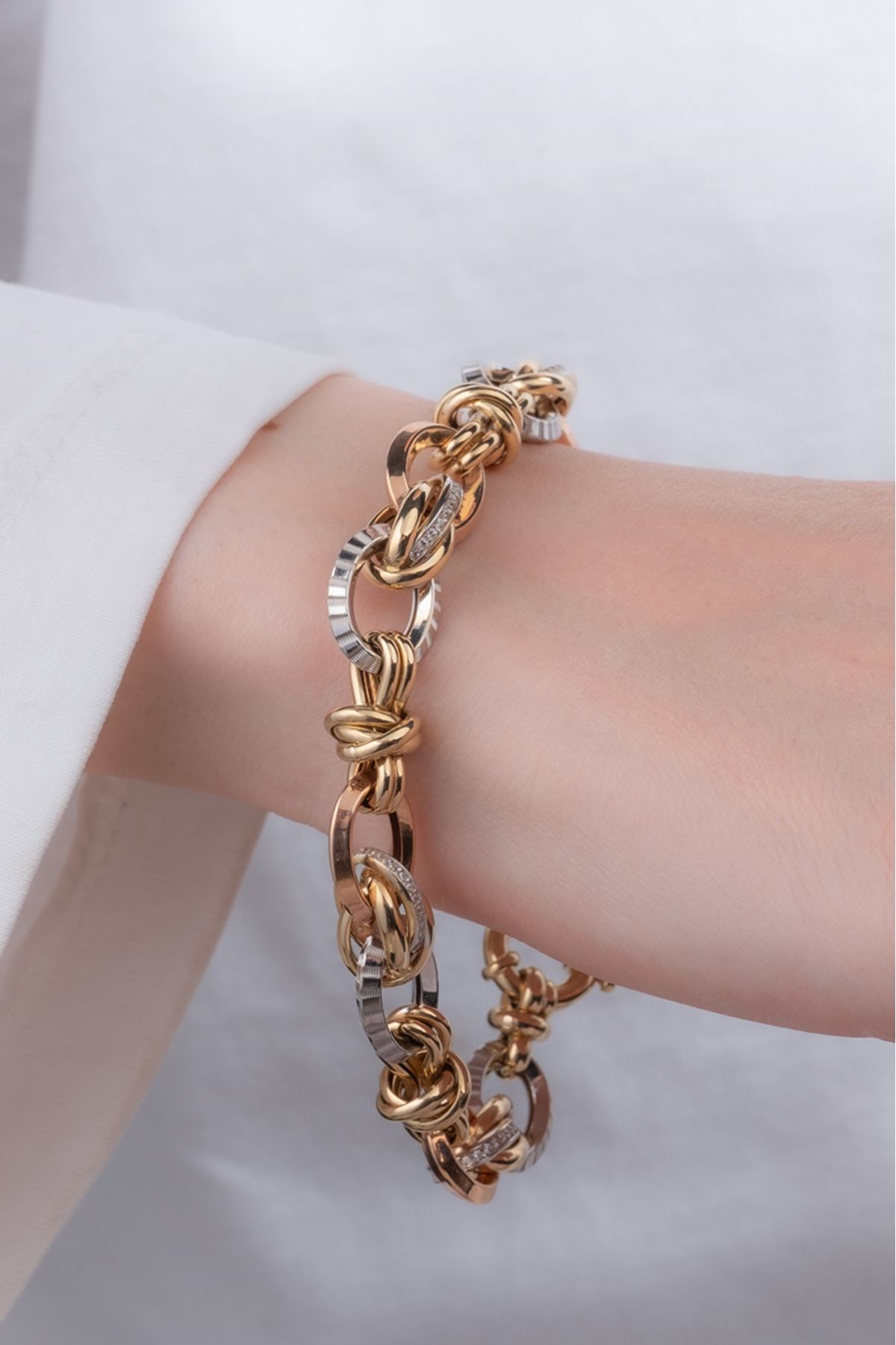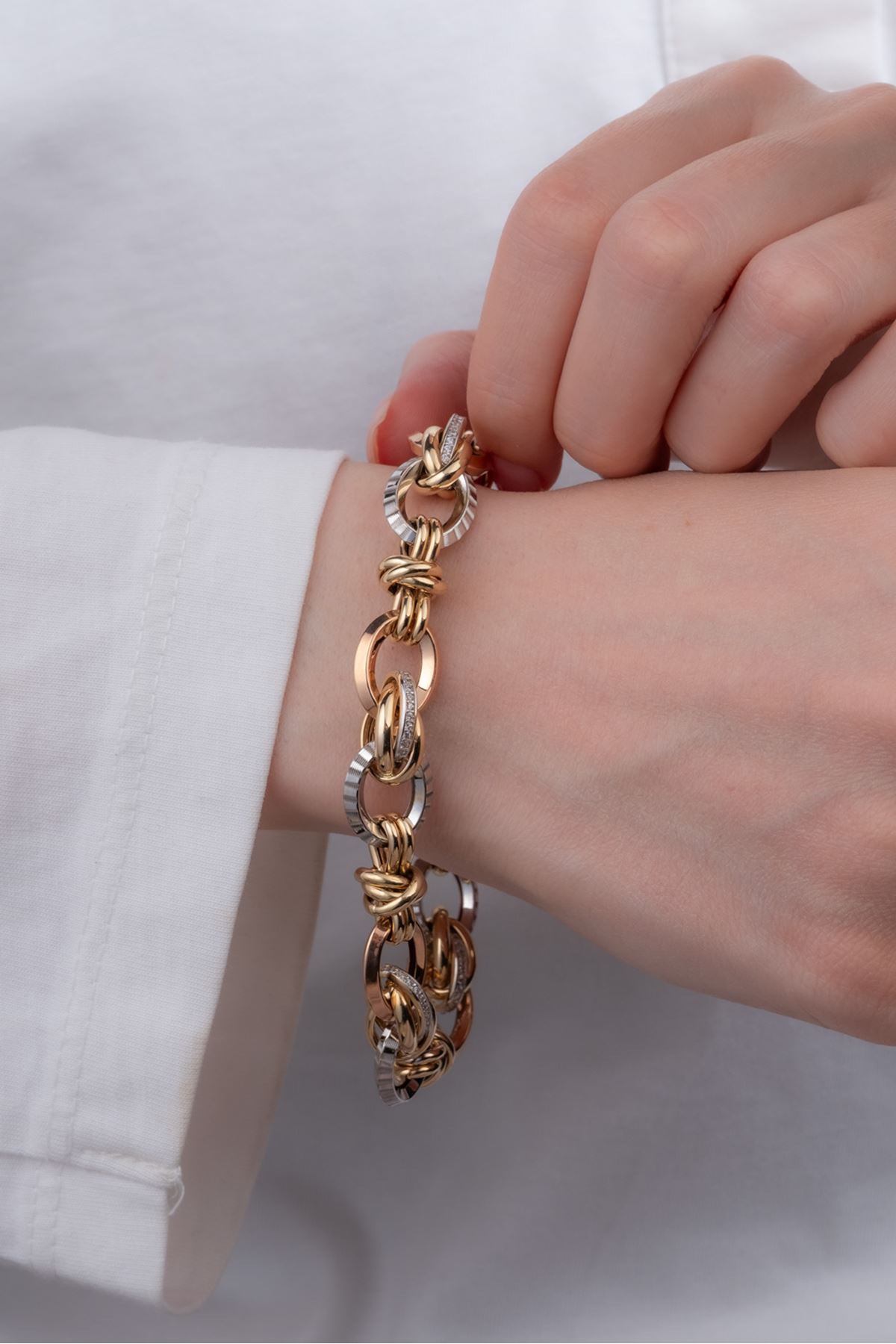 Doğum günü, sevgililer günü, anneler günü ve tüm özel anlarınızda değer verdiğiniz kişiyi de özel kılacak olan 14 Ayar Üç Renkli Altın Hallow Trend Bileklik vazgeçilmez bir hediye olacaktır. Her anında şımarmayı hak eden kadınlarımız için eşsiz 14 Ayar Üç Renkli Altın Hallow Trend Bileklik ile unutulmayacak bir hatıra bırakın.