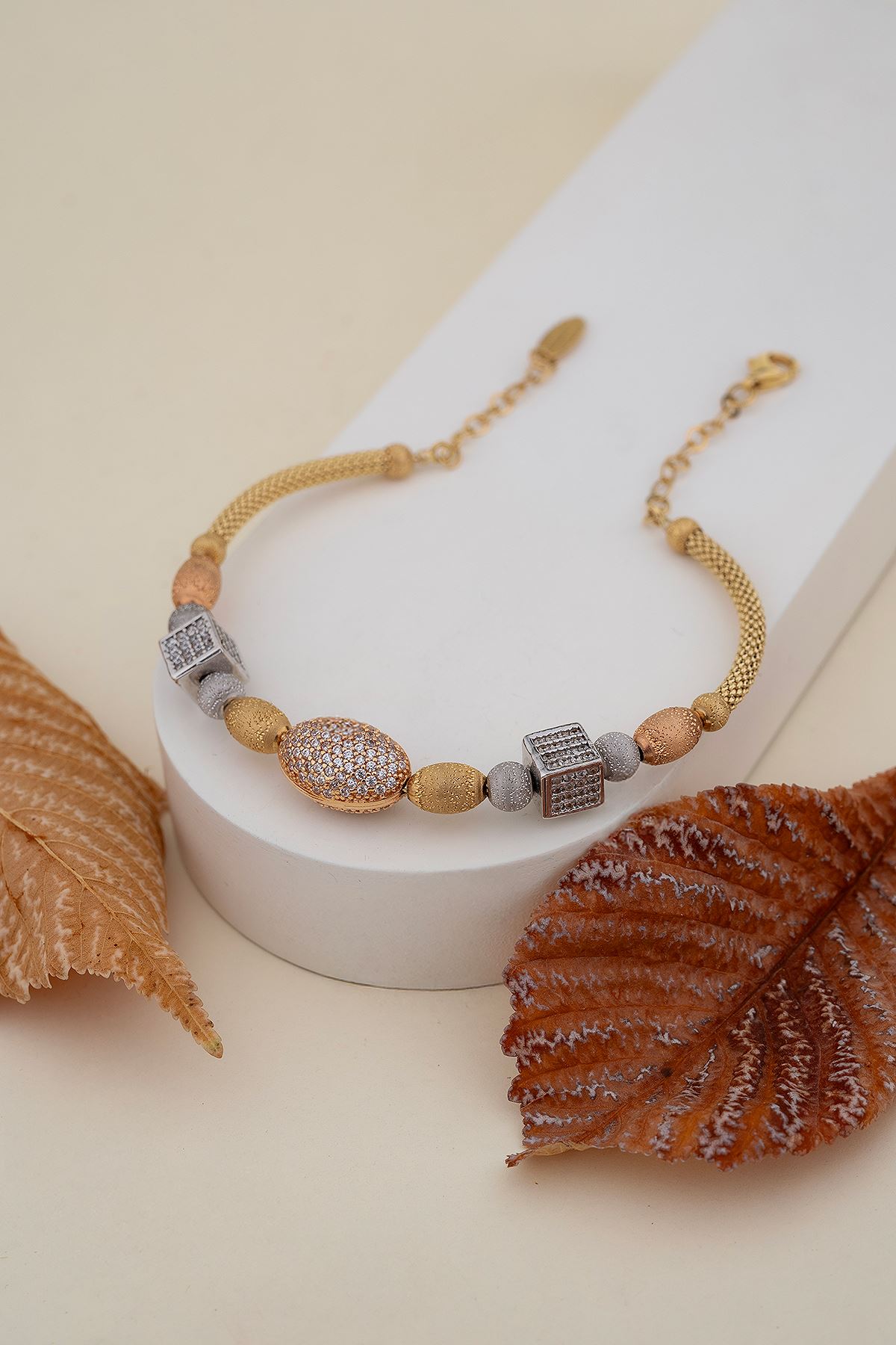 14 Ayar Üç Renkli Altın Küp Detaylı Tasarım Bilezik kaliteli işçiliği ile güvenle alışveriş yapabileceğiniz