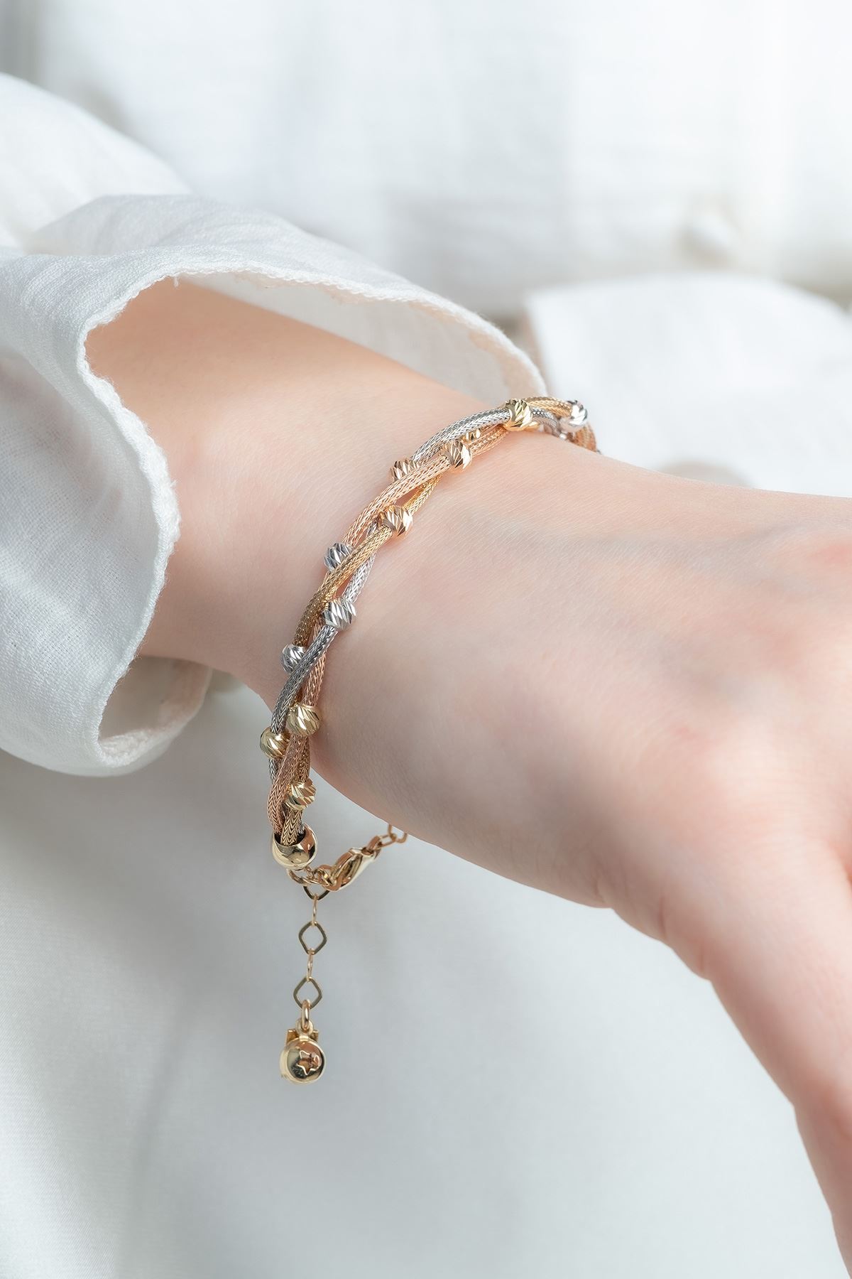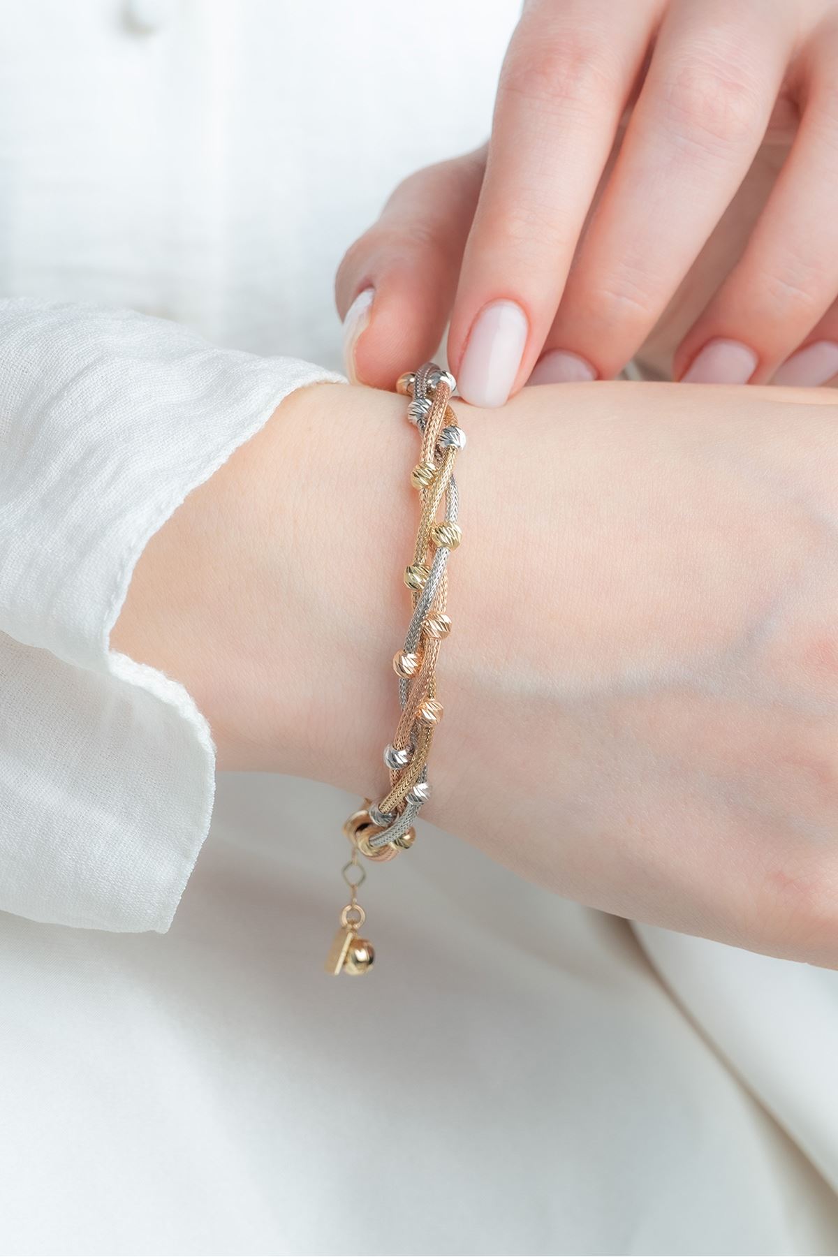14 Ayar Üç Renkli Altın Toplu Burgu Bileklik kaliteli işçiliği ile güvenle alışveriş yapabileceğiniz