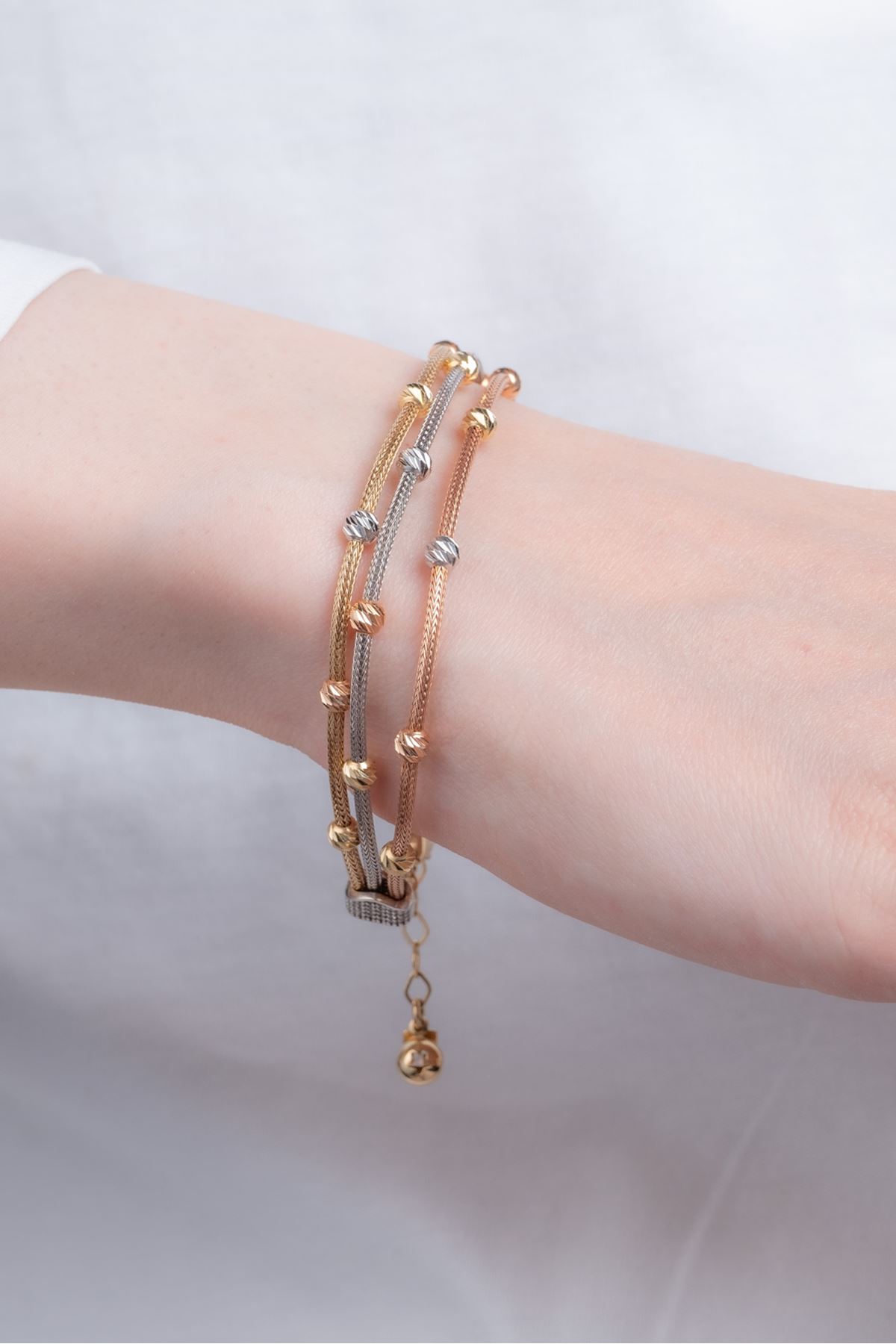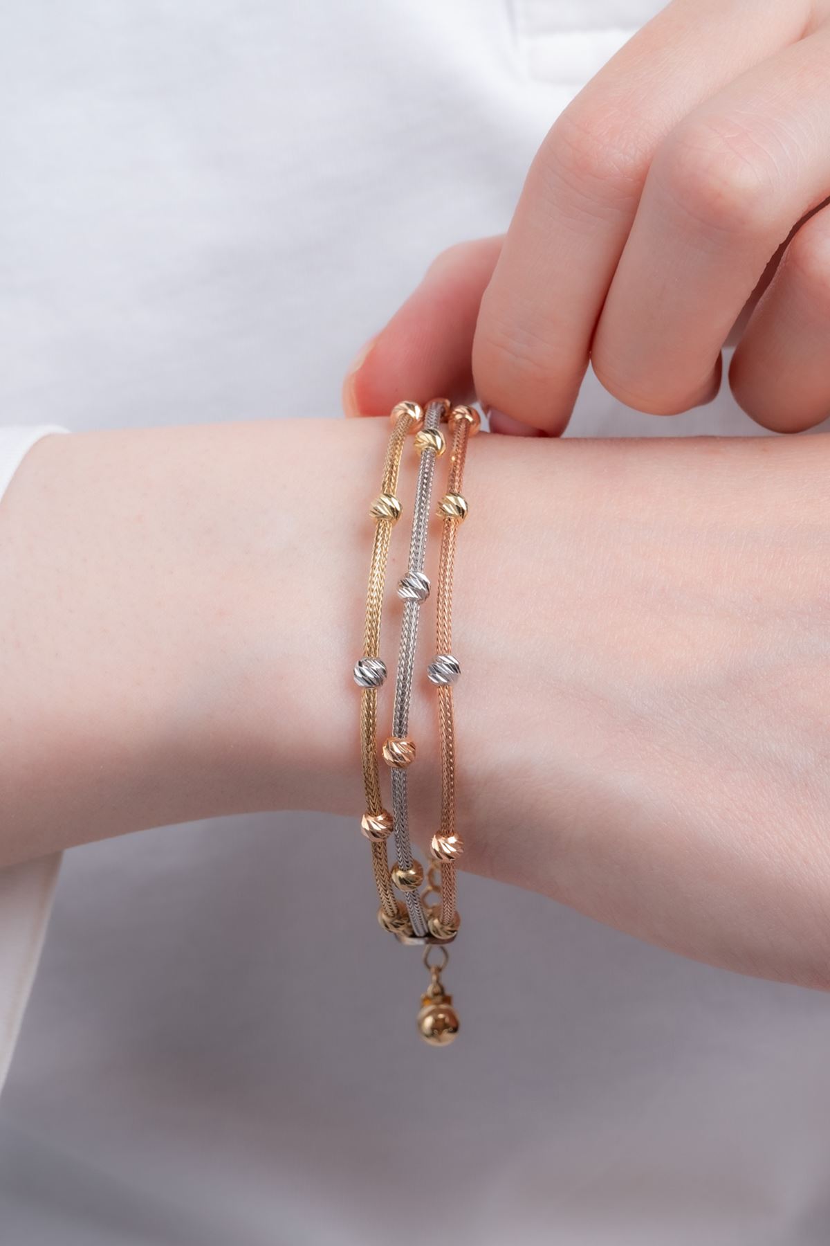14 Ayar ÜçRenkli Altın 3 Sıra Toplu Bileklik kaliteli işçiliği ile güvenle alışveriş yapabileceğiniz