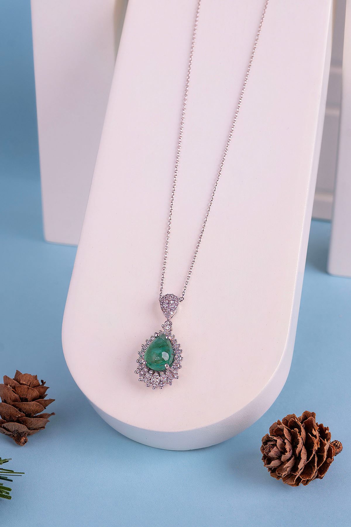 Pırlanta Yeşil Taşlı Tasarım Kolye kaliteli işçiliği ile güvenle alışveriş yapabileceğiniz