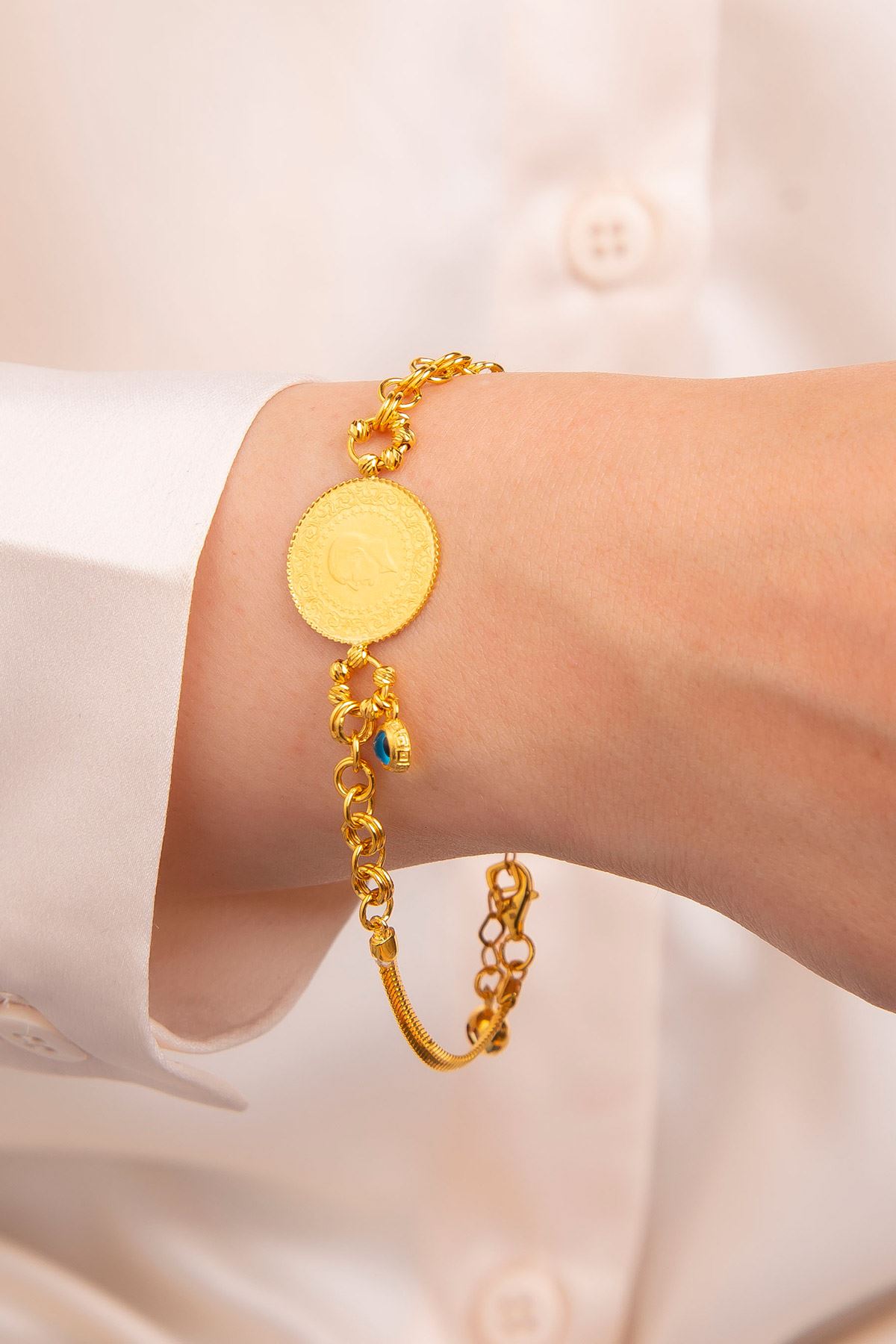 3 çeyrekli bileklik, zarif aksesuar olarak ve değerli yatırım olarak kullanıcılarına avantaj sunar. Özenle işlenen her detay, takıya sanatsal dokunuş katarken, bilekliğin kalitesini ve dayanıklılığını artırır.