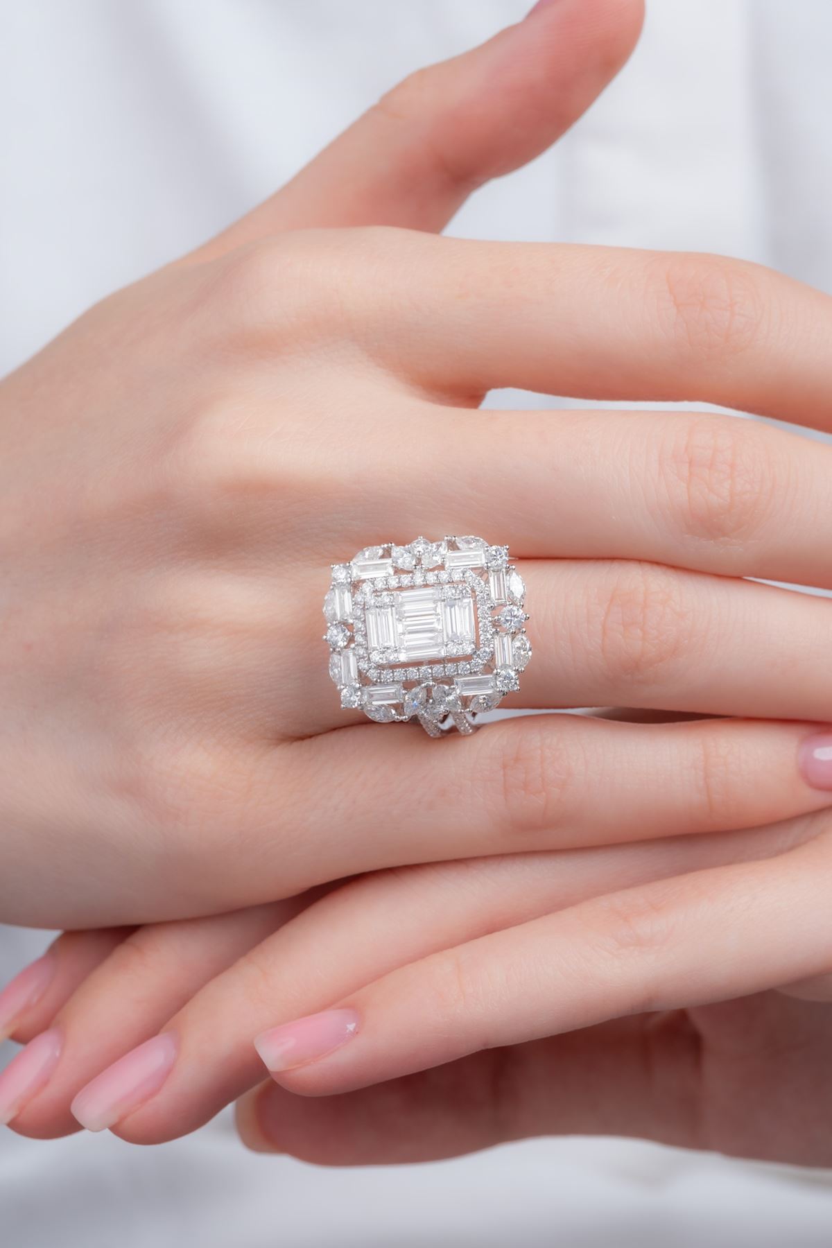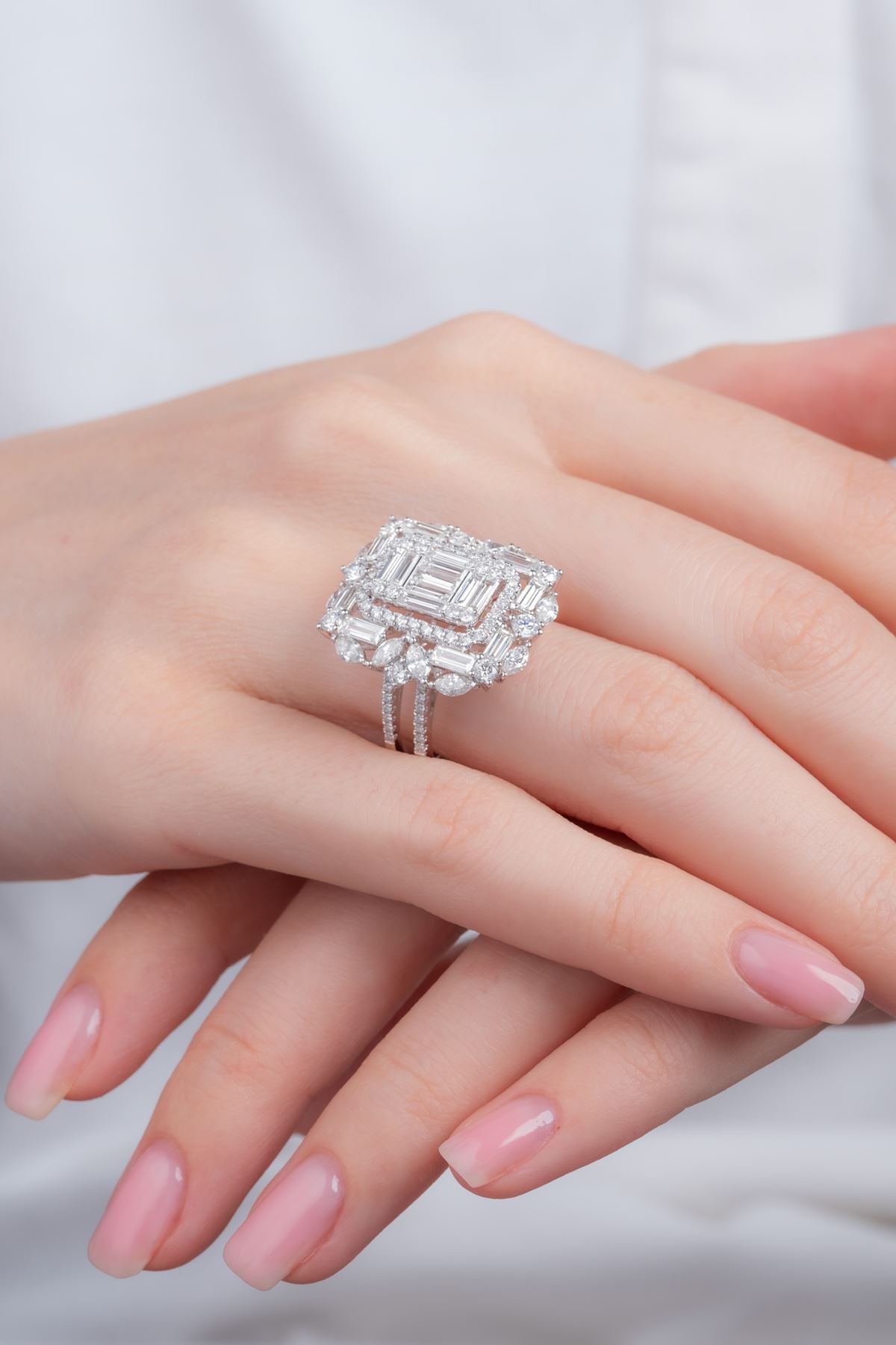 Pırlanta Büyük Baget Taşlı Tasarım Yüzük kaliteli işçiliği ile güvenle alışveriş yapabileceğiniz