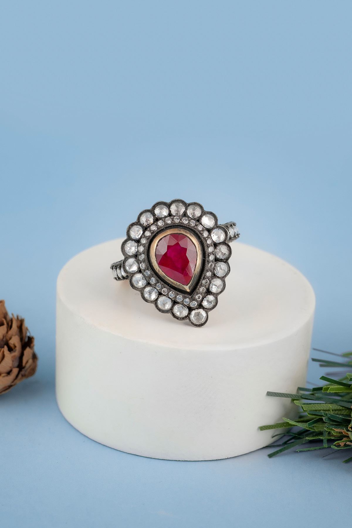 Elmas Kırmızı Taşlı Yüzük kaliteli işçiliği ile güvenle alışveriş yapabileceğiniz