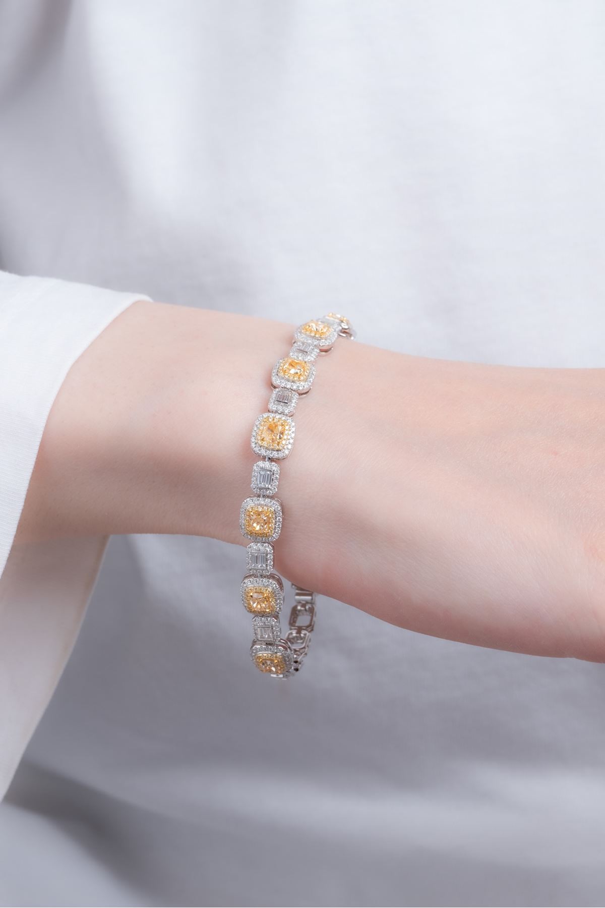 Pırlanta Sarı Taşlı Sırataş Bileklik kaliteli işçiliği ile güvenle alışveriş yapabileceğiniz