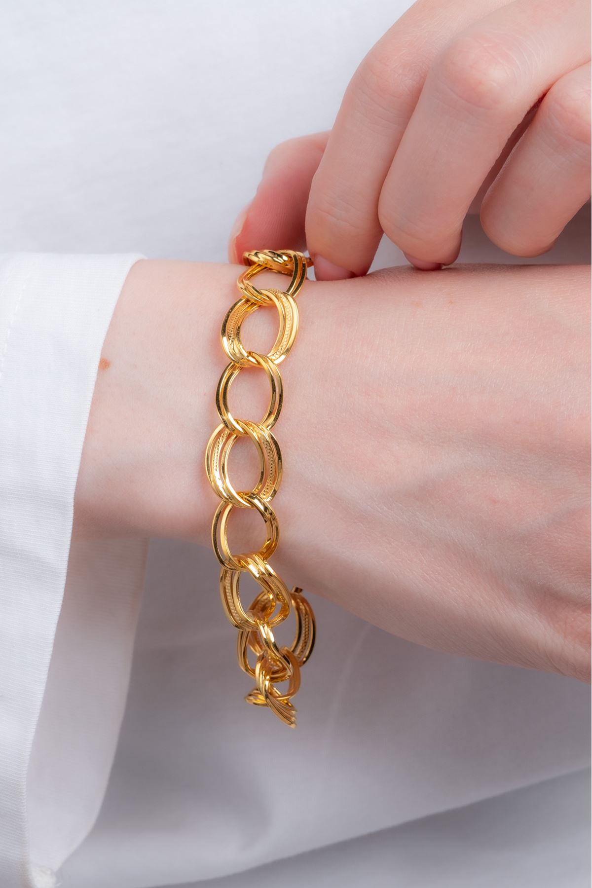 Günlük kombinlerinize uyum sağlayacak olan 8 Ayar Altın Samanyolu Bileklik ile dikkatleri üzerinize çekin. Her an sizi tamamlayacak 8 Ayar Altın Samanyolu Bileklik sizin için vazgeçilmez bir parça olacaktır. Şıklığınızı taçlandırdığımız özgün tasarımlarımız ile kendinizi şımartın.
