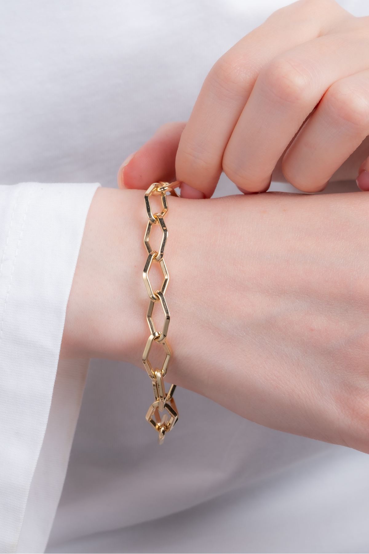 Günlük kombinlerinize uyum sağlayacak olan 8 Ayar Altın Tasarım Hallow Bileklik ile dikkatleri üzerinize çekin. Her an sizi tamamlayacak 8 Ayar Altın Tasarım Hallow Bileklik sizin için vazgeçilmez bir parça olacaktır. Şıklığınızı taçlandırdığımız özgün tasarımlarımız ile kendinizi şımartın.